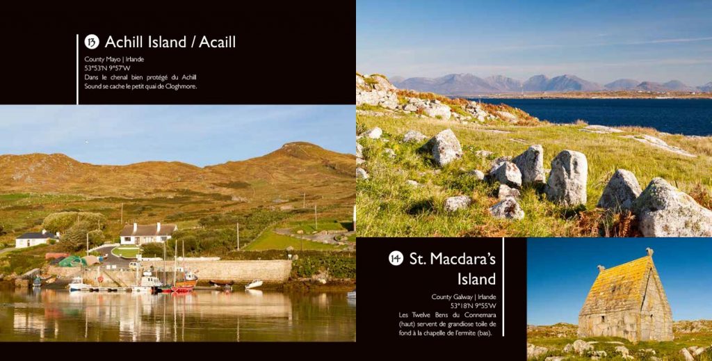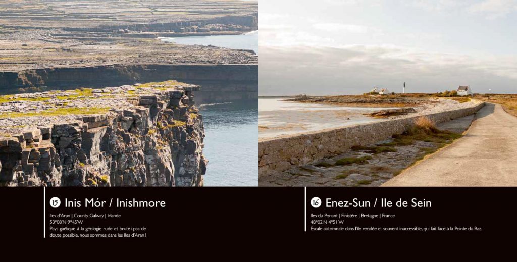 Ils nous font ainsi voyager de l’Europe du Nord à la Terre de Feu, et de l’immense Pacifique aux Mascareignes. Illustrant le grandiose ou le pittoresque qui a fait la renommée de certaines îles célèbres, ils nous font par ailleurs découvrir d’autres destinations plus secrètes. Avec eux à bord de leur cotre Fleur de Sel, nous voici donc transportés aux antipodes ou à quelques jours de mer seulement, mais toujours au-delà des flots. Le temps d’un regard, chaque île nous accueille, suscitant en nous fascination et soif de découverte…